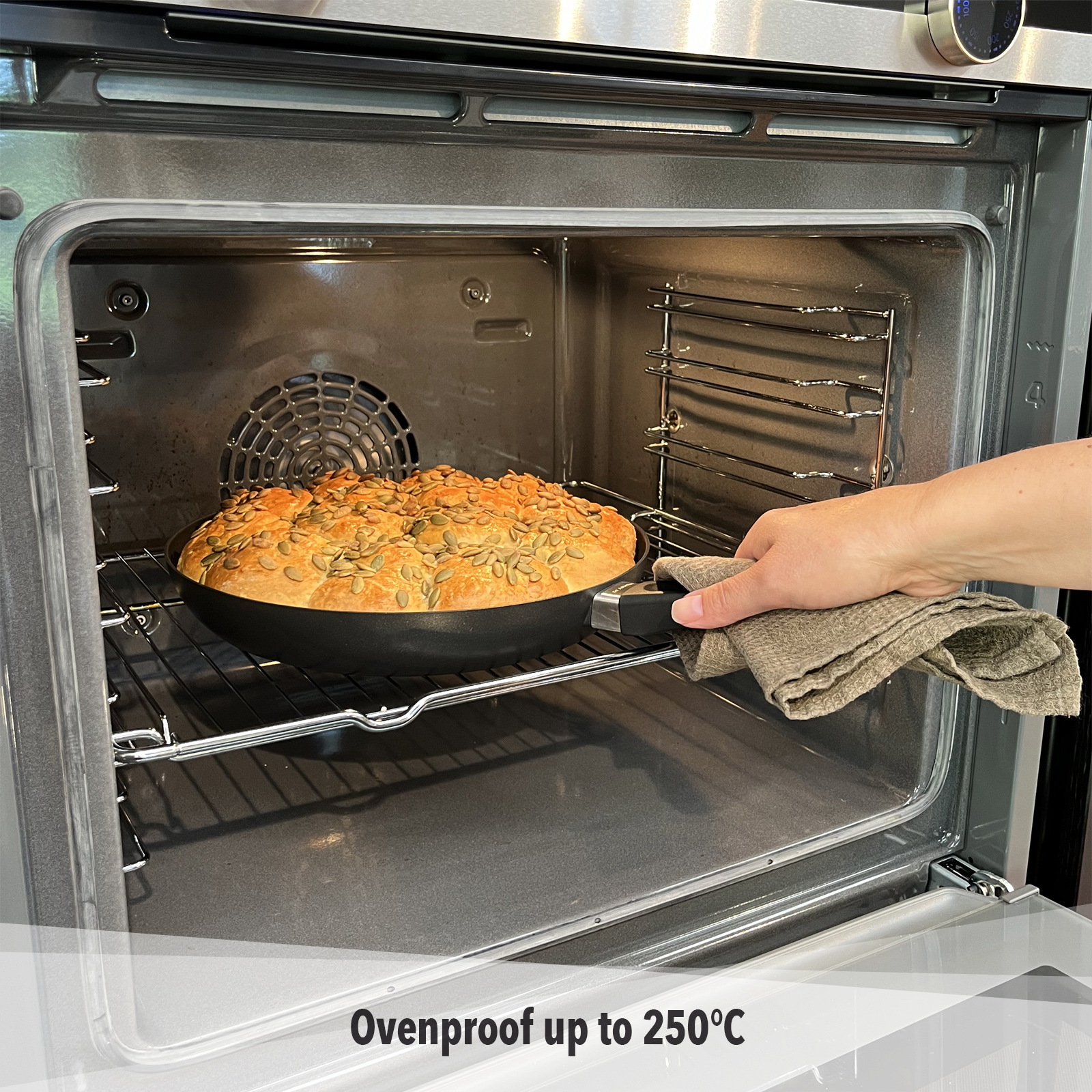 HUSK! pande, låg og håndtag kan klare ovnvarme helt op til 250°.