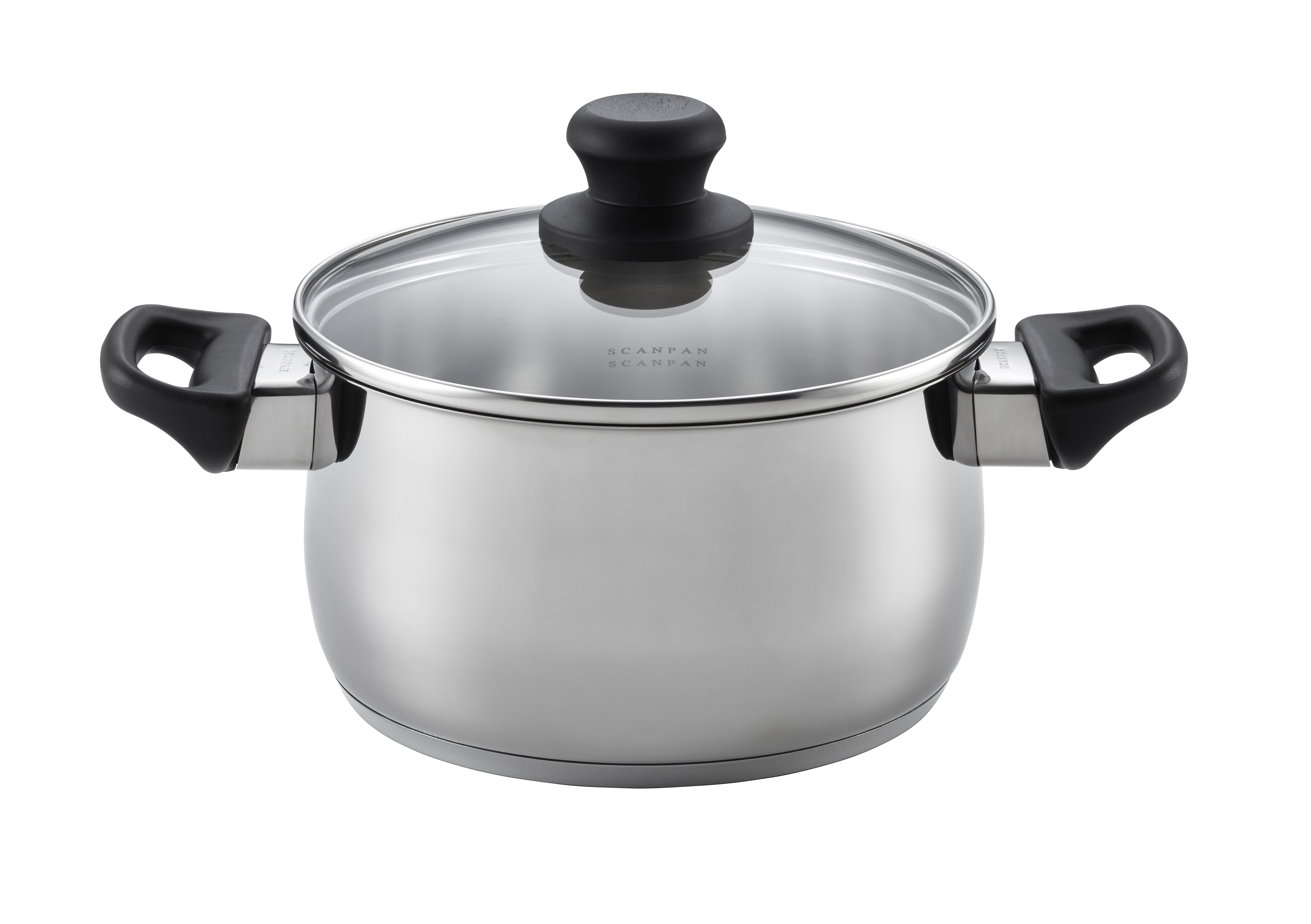 Functional and solid stainless steel dutch oven with practical glass lid. Stir-friendly body shape and drip-free rim design.