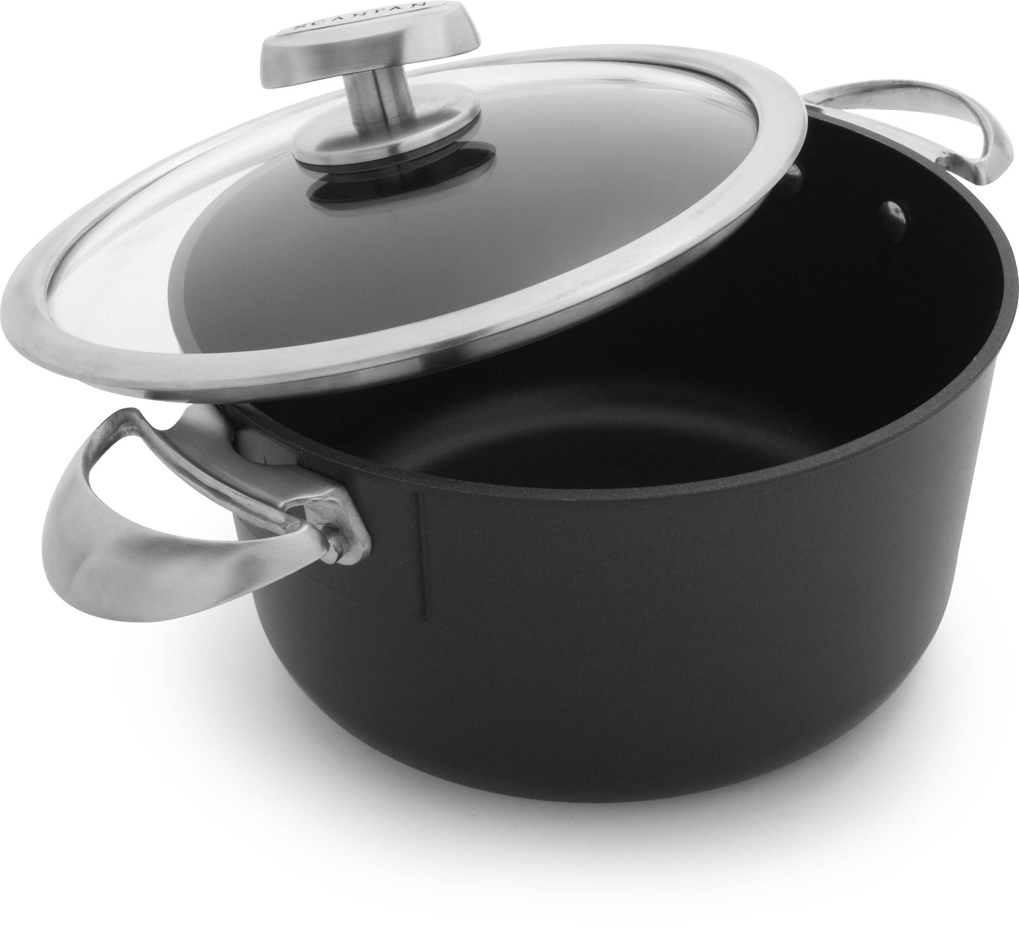 Products in the Pro IQ range have the famous SCANPAN non-stick coating, which is hard-wearing and very easy to clean. Our coating consists of several layers that during the production process melt together, forming one exceptionally solid surface. In addition to the user-friendly features given by materials and production technique, pans and pots from the Pro IQ range are formed in a characteristic cool design with softly curved stainless steel handles and a glass lid with steel rim.
